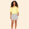 Striped Delight. Mikayla is made in our new midweight striped cotton. This A-line pull on skirt features a flat front waistband and elasticized back, faux wrap detail, and side seam pockets.