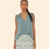 Easy Breezy. Tish is back this season in our washed double faced cotton gauze for a soft, gently crinkled feel. This sleeveless pullover top has a band collar and partial rouleau button-front. Pair back with our Devon pant or Deon skirt for easy elegance.