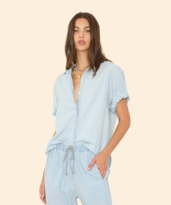 Vacation Mode. Channing is quintessential Xirena and an essential basic. Updated this season in our lightweight, soft-woven cotton chambray in a classic light blue wash, the Channing Shirt is a must-have season after season with its "boy meets girl" attitude.