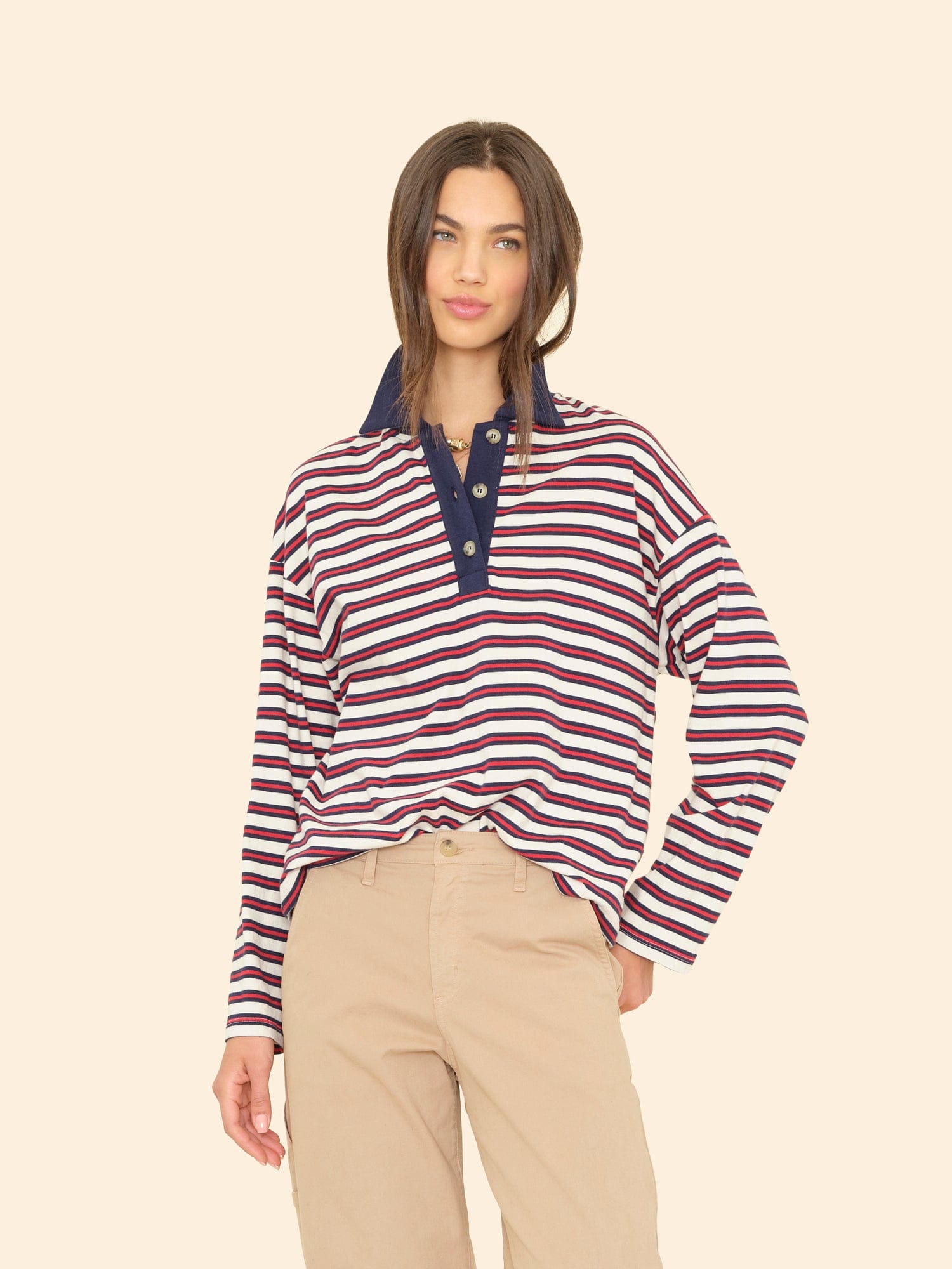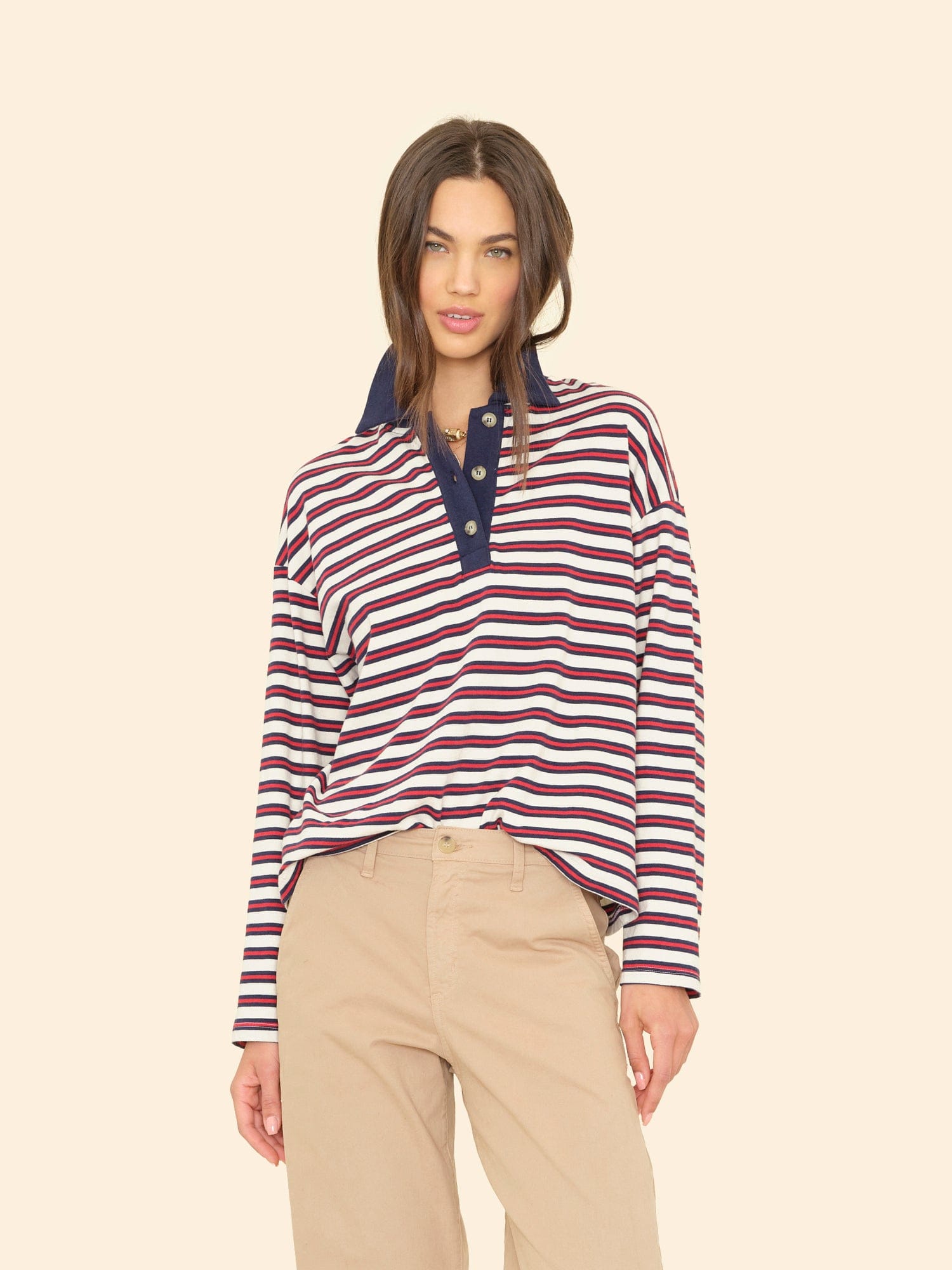 Earn your stripes. Clay is new this season in our ultra-soft striped cotton jersey. Clay is a classic rugby shirt with a henley button-front and contrast collar and placket.
