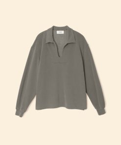Make a (Cozy) Statement. Trey is new this season in our organic mineral wash terry, utilizing an eco-friendly dyeing process with natural dyes. This pullover sweatshirt features a high collar, split neck with V-yoke, and a clean finished high low hem with side slits.