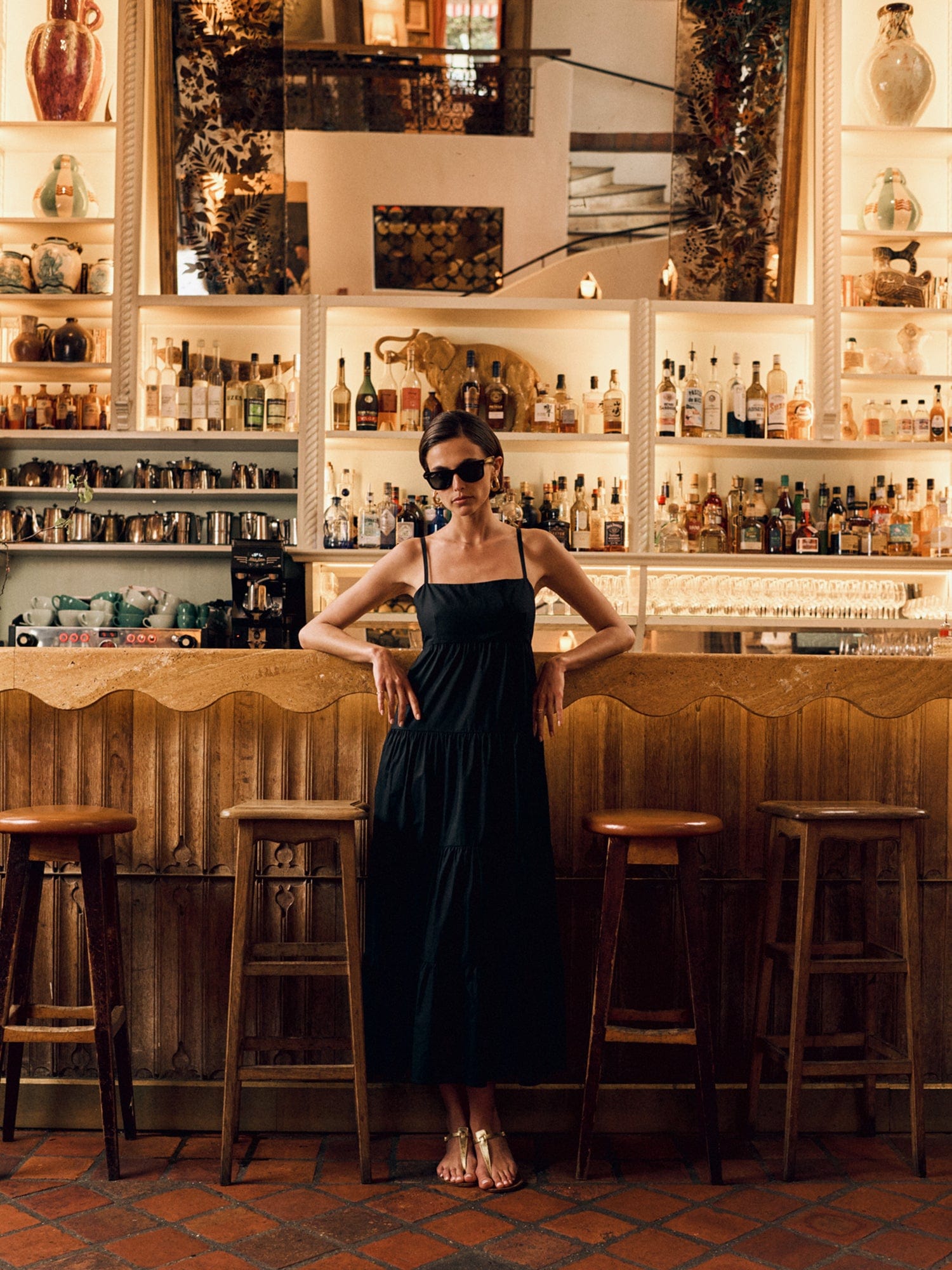 Pretty Please. Hazel is made in our new crisp paper poplin with a refined feel. This tiered midi sundress features a square neck, adjustable straps, tie-back, and side seam pockets.