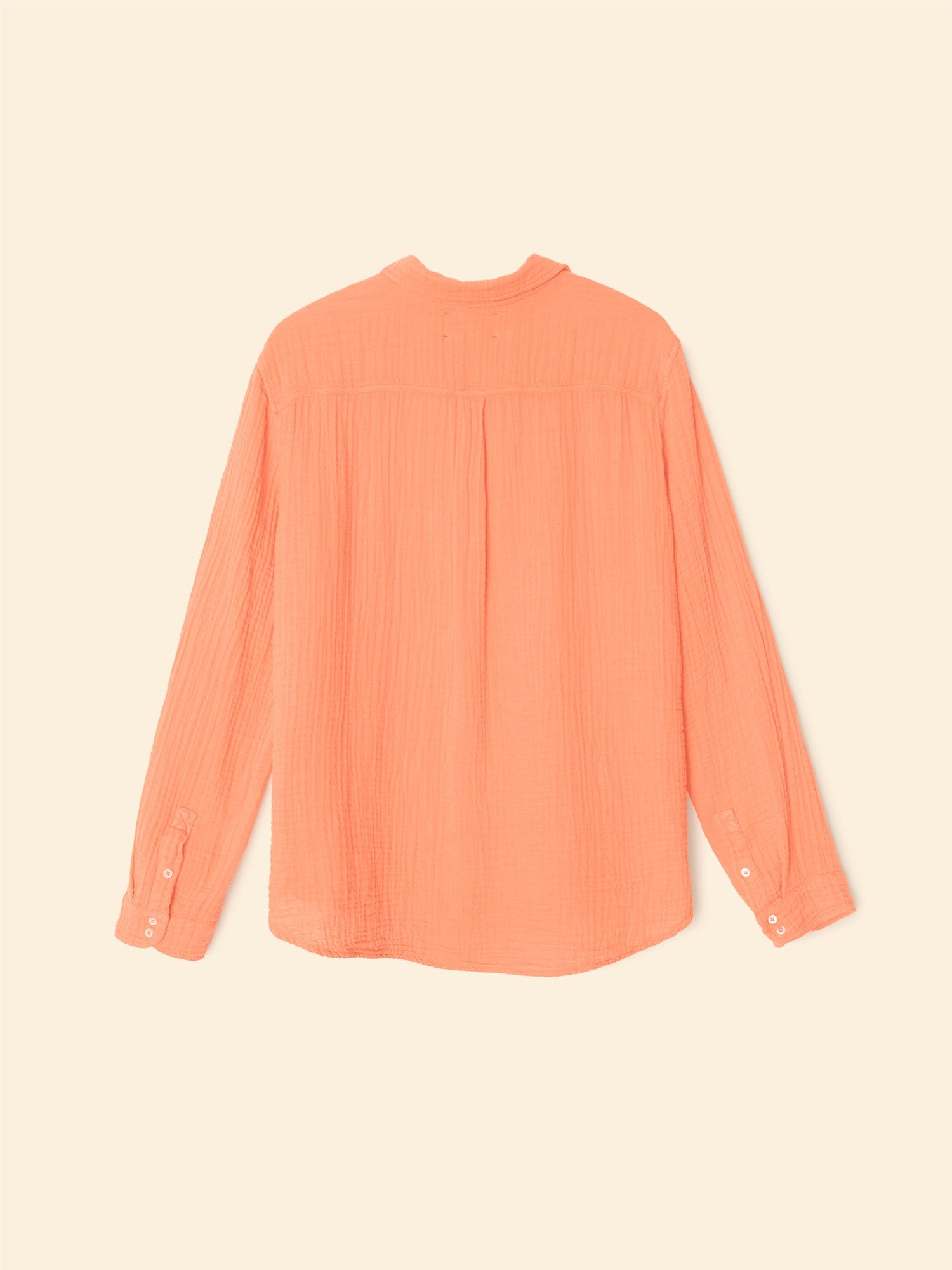 Bare Necessities. Scout is made in our washed double faced cotton gauze for a soft, gently crinkled feel. This lightweight button-front shirt has a shirttail hem and box pleated back yoke.