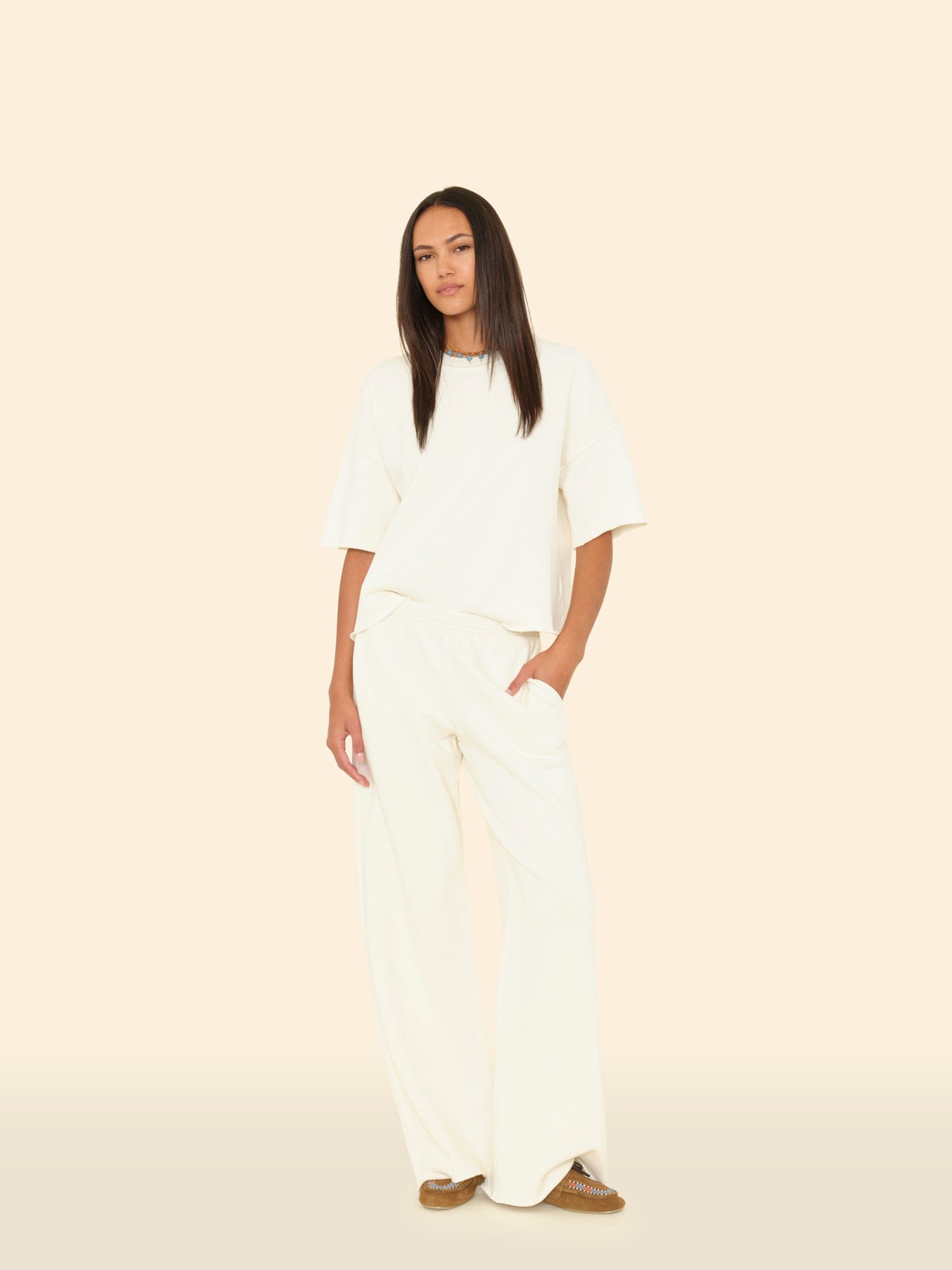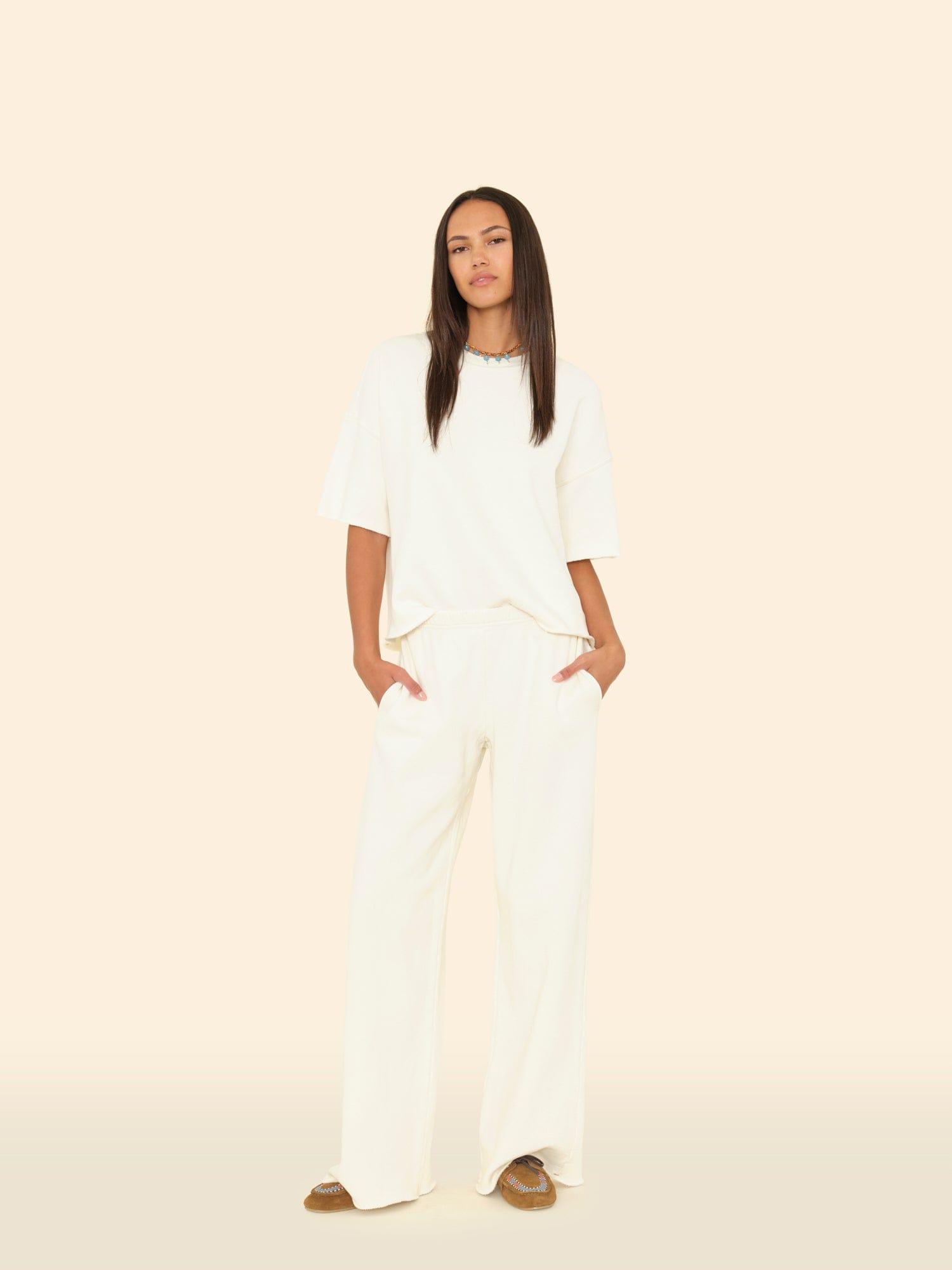 Make a (Cozy) Statement. Emmette is made in our ultra-soft fleece. Emmette is a pull on sweatpant with a wide leg, elasticized waist, and side seam pockets. Pair back with the Romeo Sweatshirt for elevated comfort.