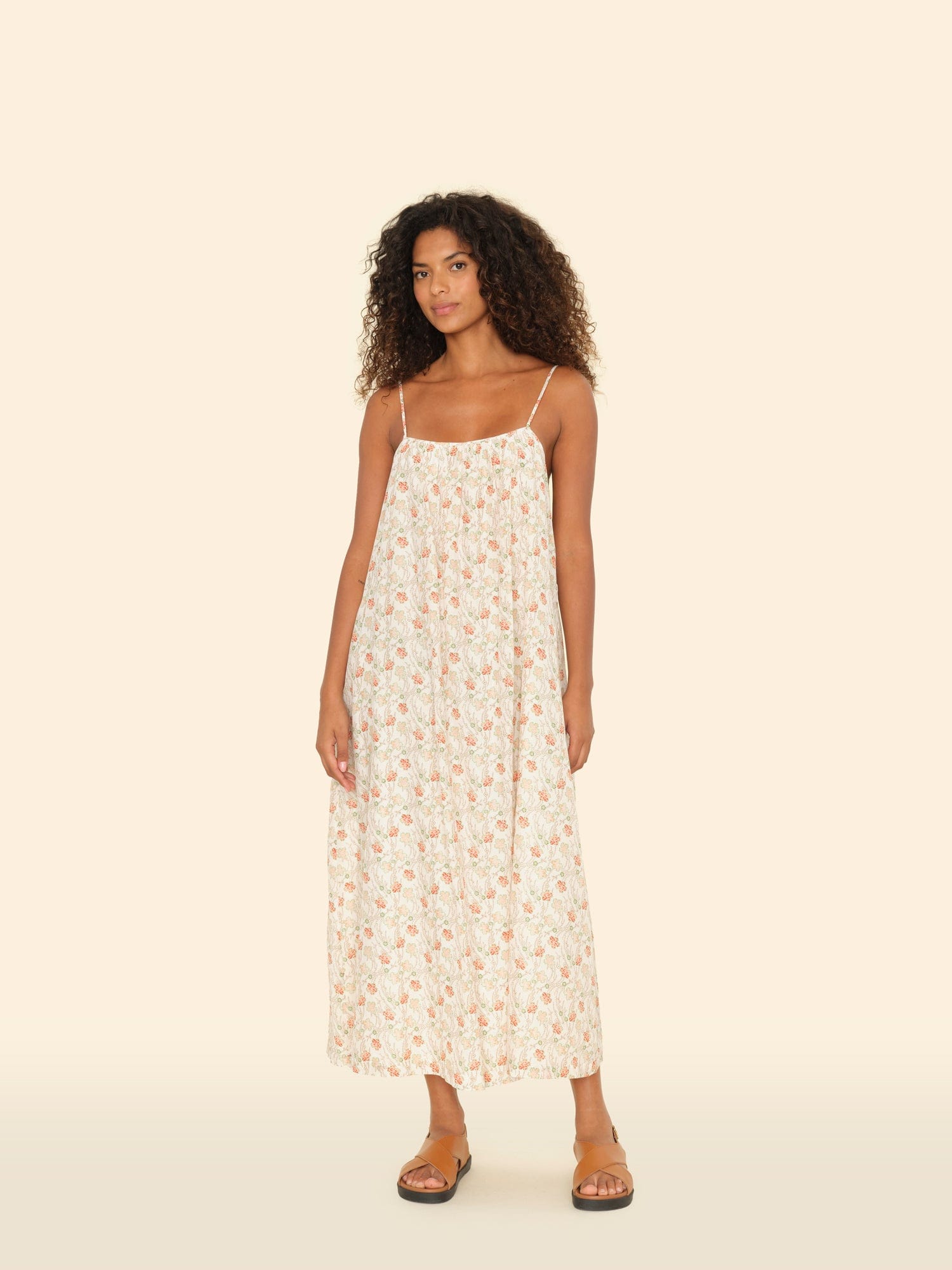 Flower Power. Vanna is new this season in our vintage-inspired cotton silk voile floral print. Vanna is a fully lined midi dress that features spaghetti straps, shirring, and a braided self-tie belt.