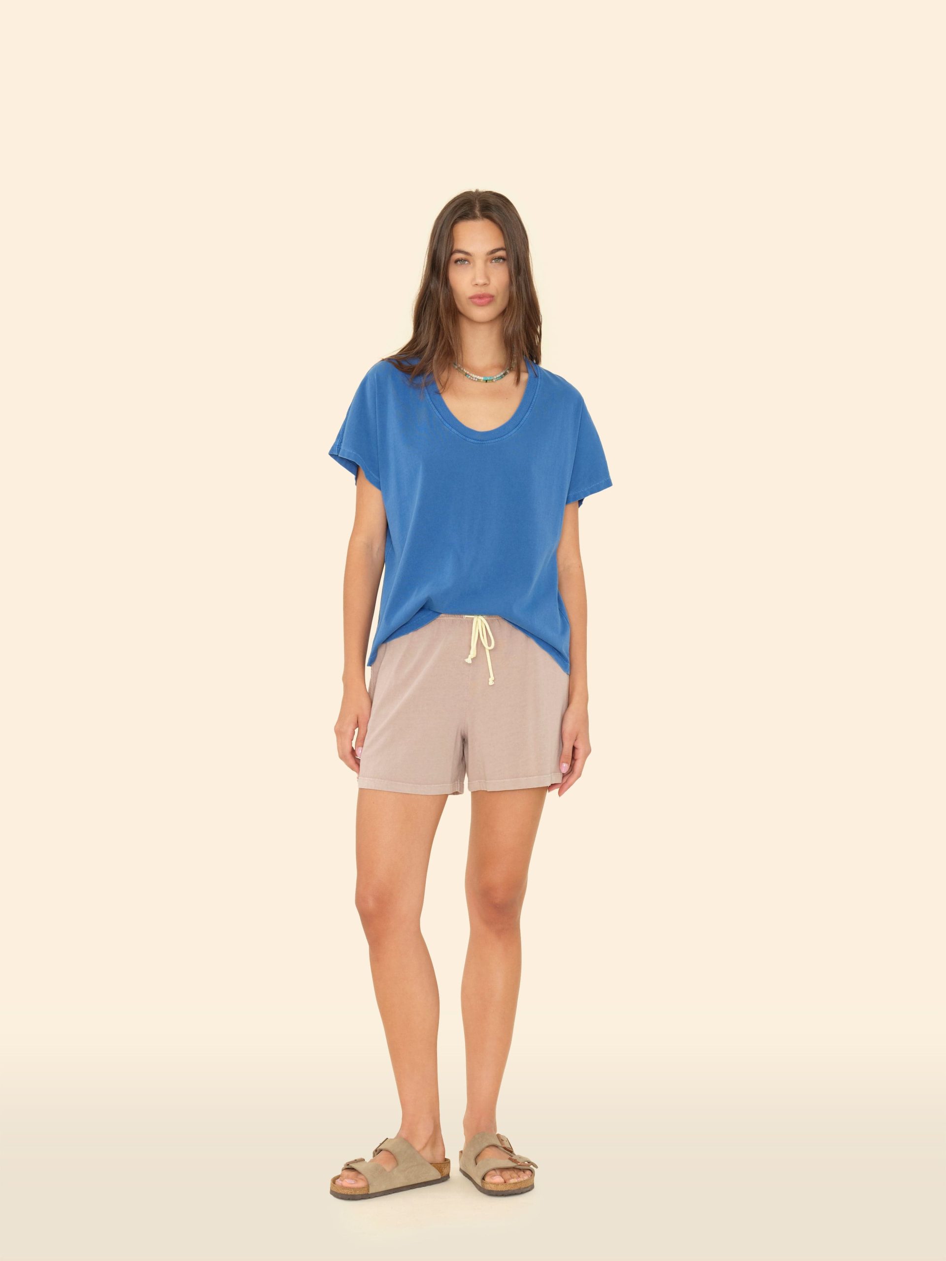 Back to Basics. Cassie is new this season in our ultra-soft cotton jersey. This easy lounge short features a contrast elasticized drawstring waist and side seam pockets. Pair back with the Palmer tee or Jett tank for casual comfort.