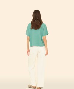 Forever Denim. Joey is made in our drapey, ultra-soft lyocell denim. This straight leg pant features an elasticized drawstring waist, faux front fly, and open back pockets.