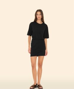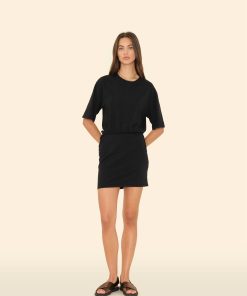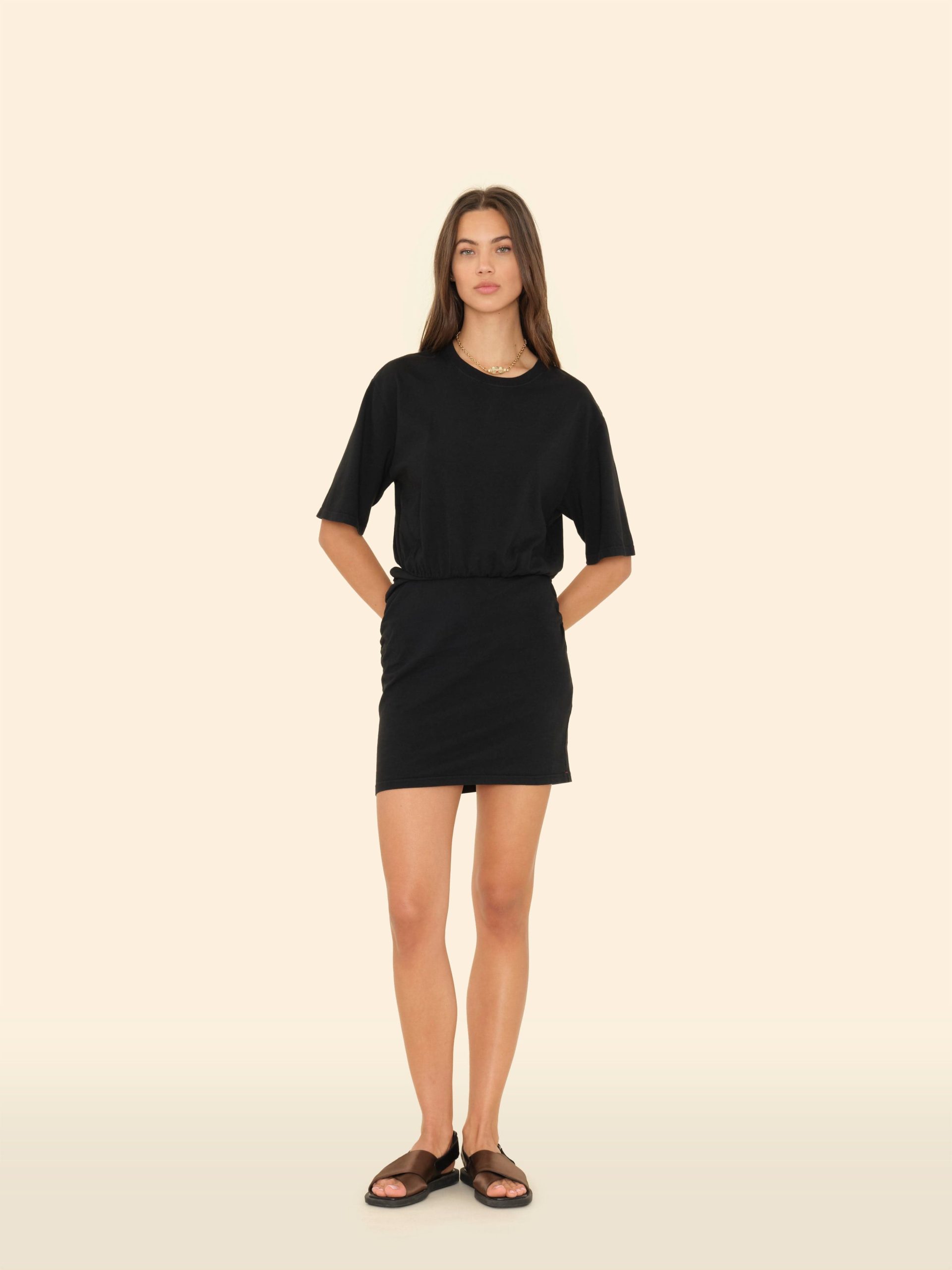 Back to Basics. Lexa is new this season in our ultra-soft cotton jersey. Lexa is a t-shirt mini dress with a shirred skirt.