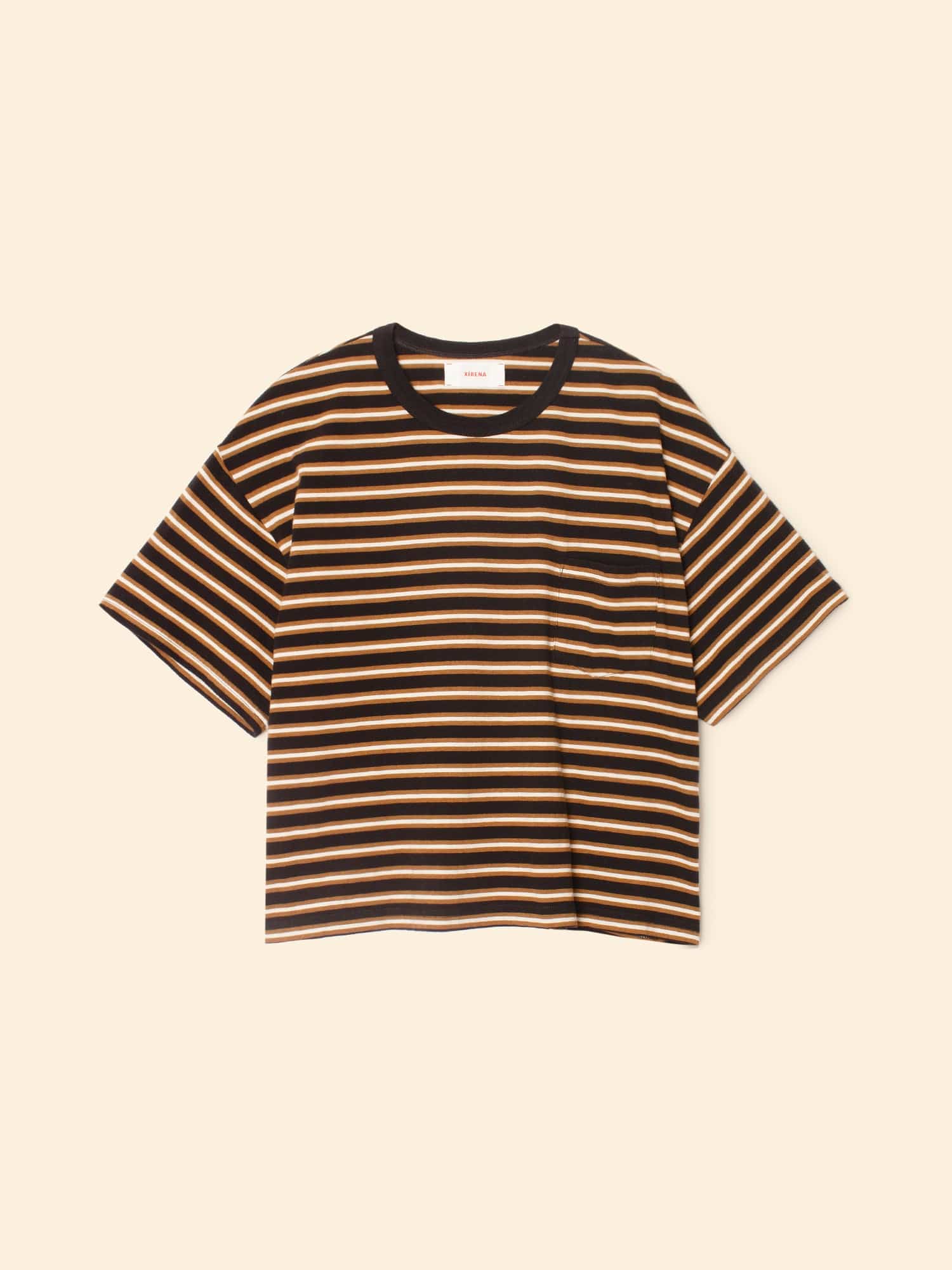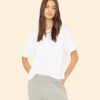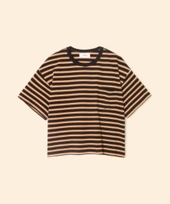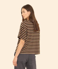 Earn your stripes. Paulina is made in our ultra-soft striped cotton jersey. Paulina is an updated version of our bestselling Palmer Tee with a left chest pocket and contrast ringer neck.