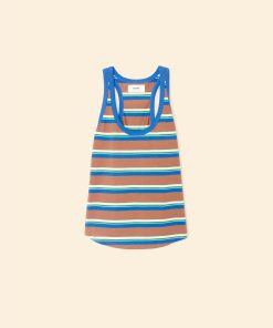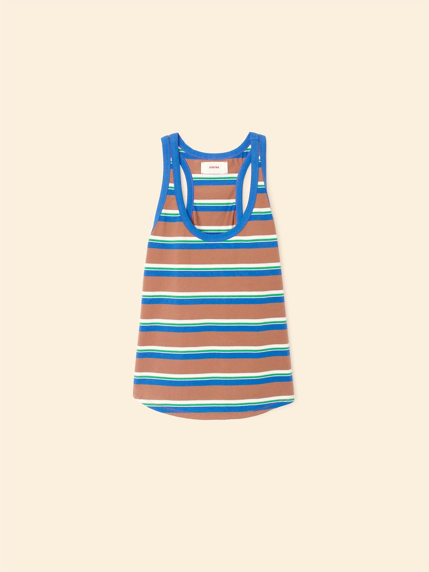 Back to Basics. Jett is back this season in our ultra-soft striped cotton jersey. This racerback tank features contrast wide self-binding along the neck and a curved high low shirttail hem. Pair back with the Crawford or Crispin lounge pant for ultimate ease and comfort.