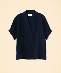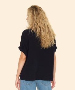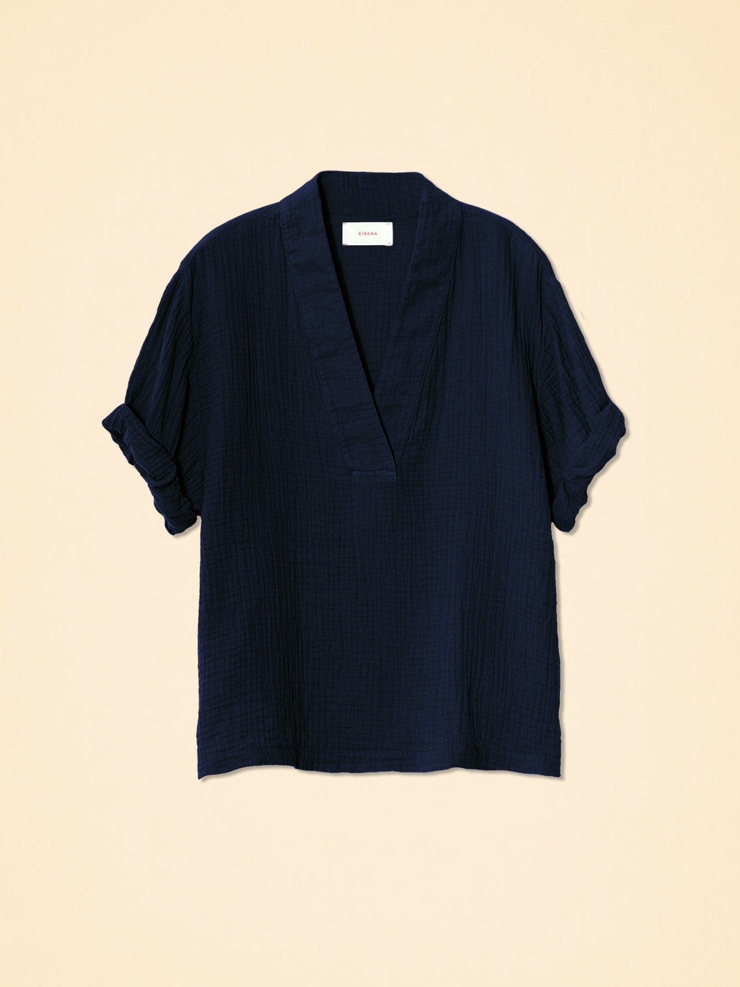 Bare Necessities. Avery is made in our washed double faced cotton gauze for a soft, gently crinkled feel. This lightweight pullover top has a deep V-neck and rolled sleeves for an easy, effortless feel.