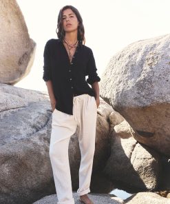 Easy does it. Draper is made in our classic lightweight woven cotton poplin for a lived-in look and feel. Draper is an easy pull-on pant with a drawstring waist and side seam pockets.