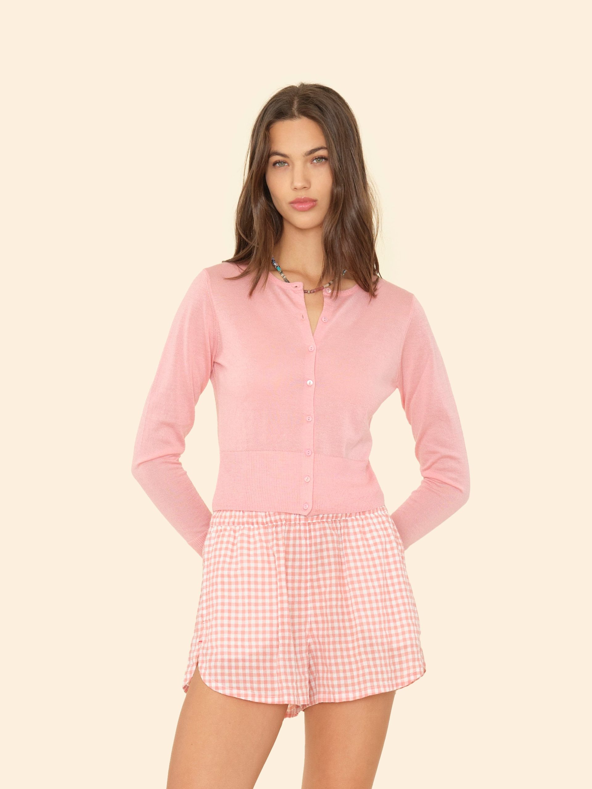 Soft spot. Kodiak is new this season in our luxe, superfine silk cashmere blend. Kodiak is a cropped cardigan with a round neck and high-waisted rib hem.