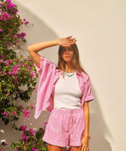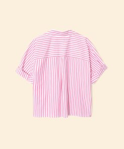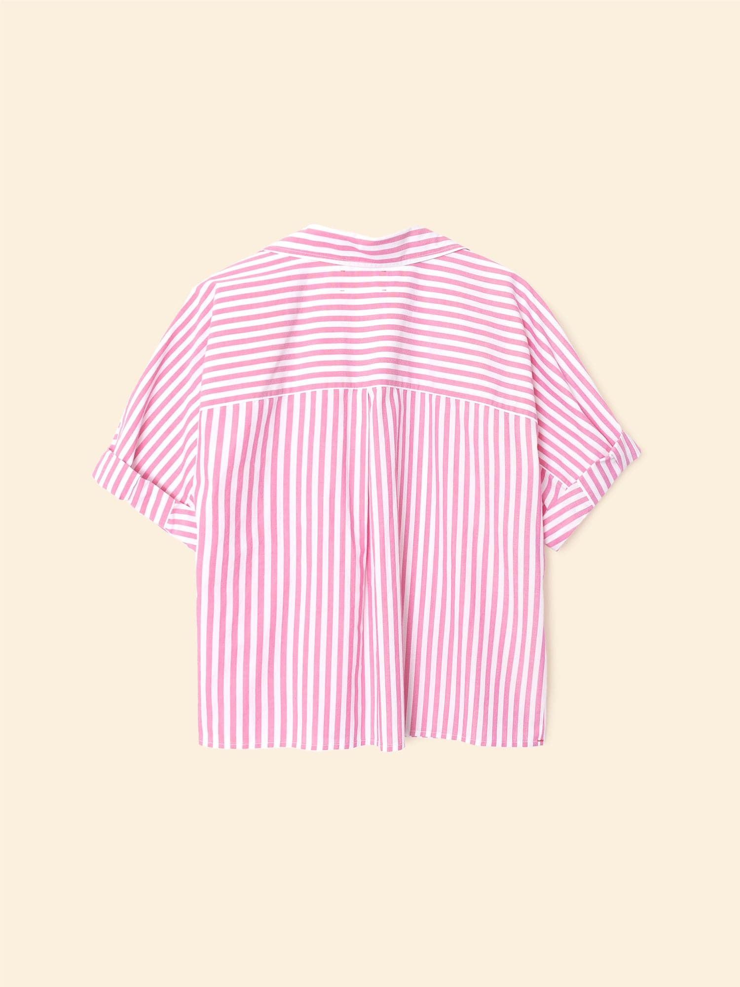 Striped Delight. Teddy is updated this season in our crisp cotton stripe. Teddy is an easy, cropped button-front shirt with a boxy fit, rolled sleeves, and back yoke.