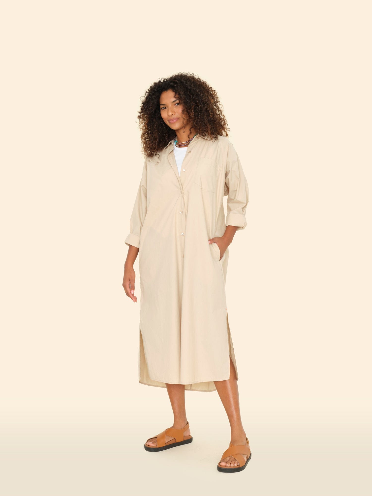 Forever Timeless. Marfa is made in our new crisp paper poplin with a refined feel. Inspired by our bestselling Boden Dress, Marfa is a relaxed shirtdress with a button-front, left chest pocket, side seam pockets, hem side slits, and a shirred back yoke.