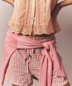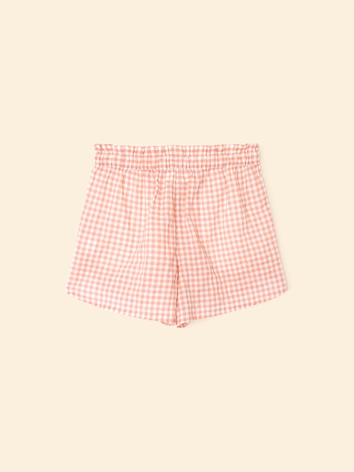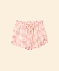 Checkmate. Starla is updated this season in our cotton gingham check with added stretch for ease of comfort. Starla is a Dolphin short with an elasticized drawstring waist and side seam pockets.