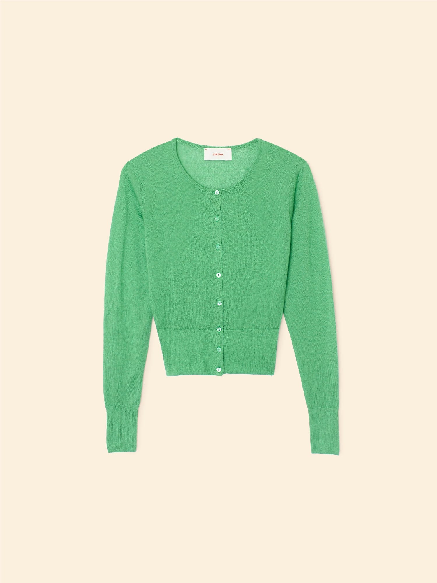 Soft spot. Kodiak is new this season in our luxe, superfine silk cashmere blend. Kodiak is a cropped cardigan with a round neck and high-waisted rib hem.