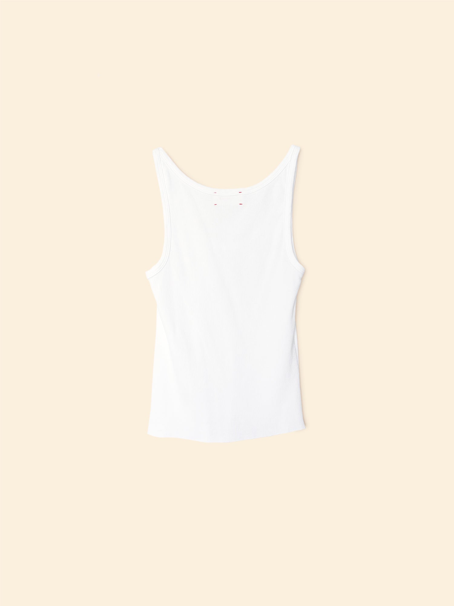 Back to Basics. Beck is new this season in our fine cotton rib knit. This soft tank has a deep scoop neck, double binding straps, and a straight hem.