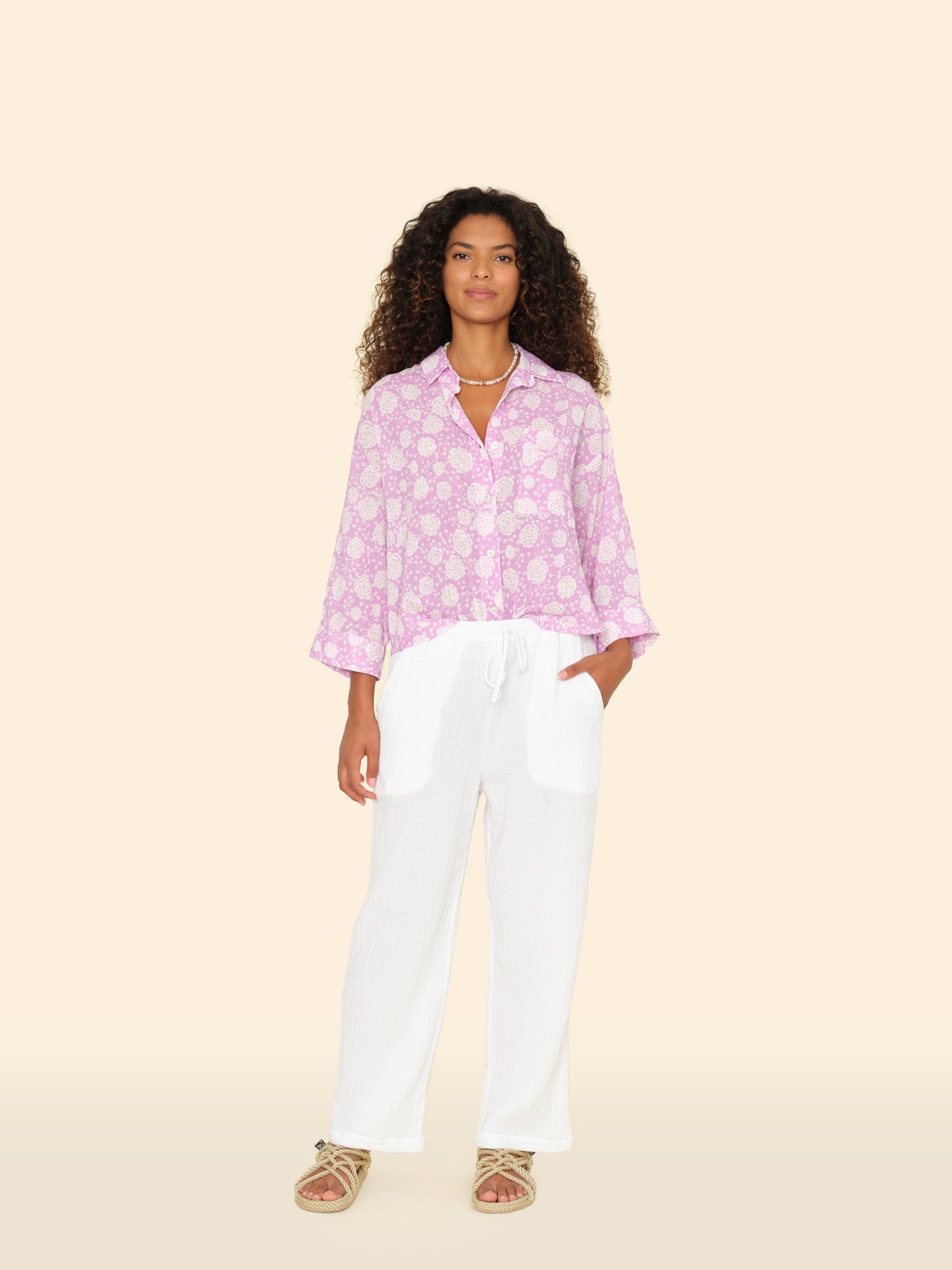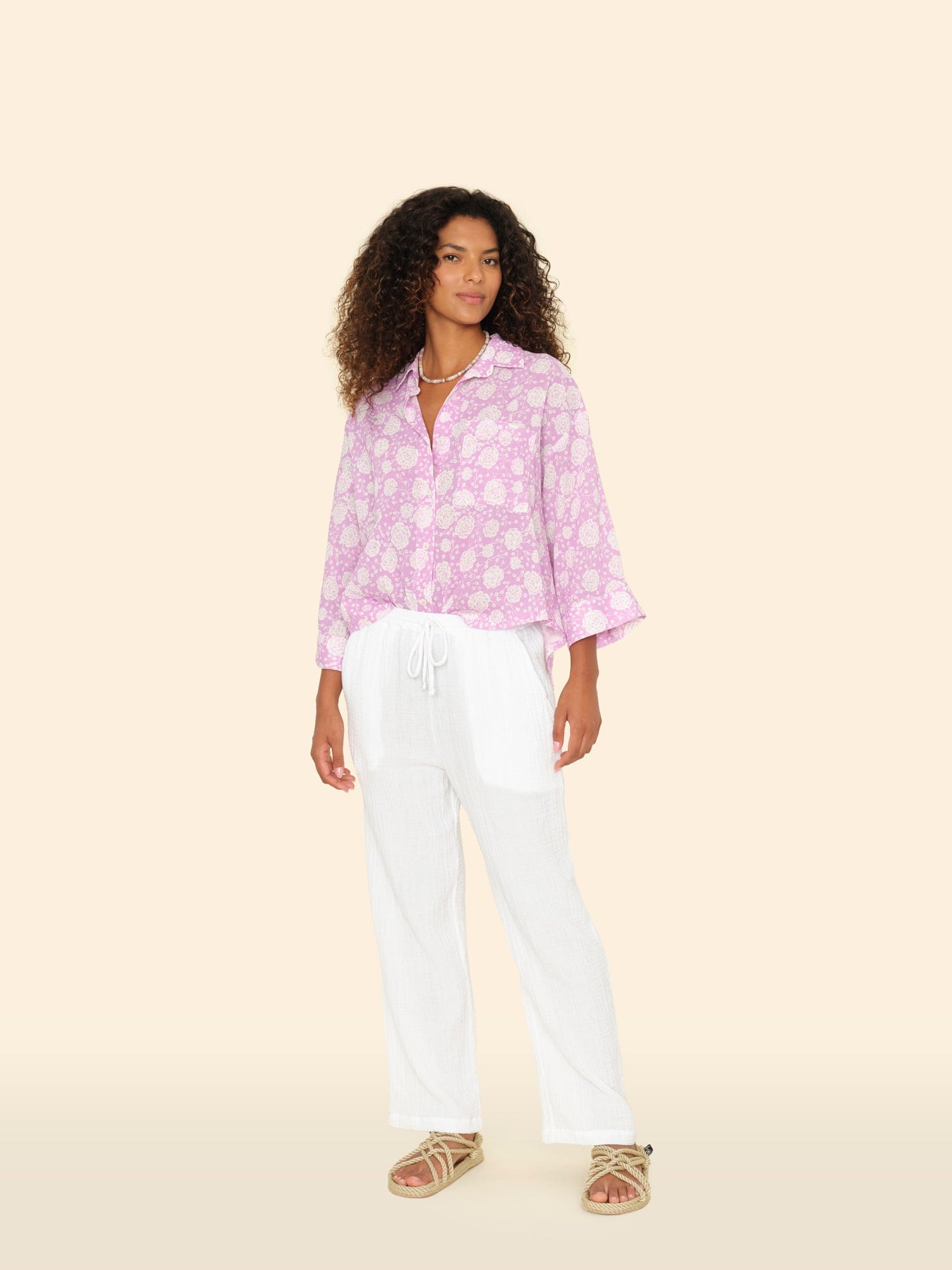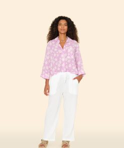 Sitting Pretty. Devon is new this season in our washed double faced cotton gauze for a soft, gently crinkled feel. Devon is a mid-rise pull on pant with an elasticized drawstring waist, side seam pockets, and a straight leg.