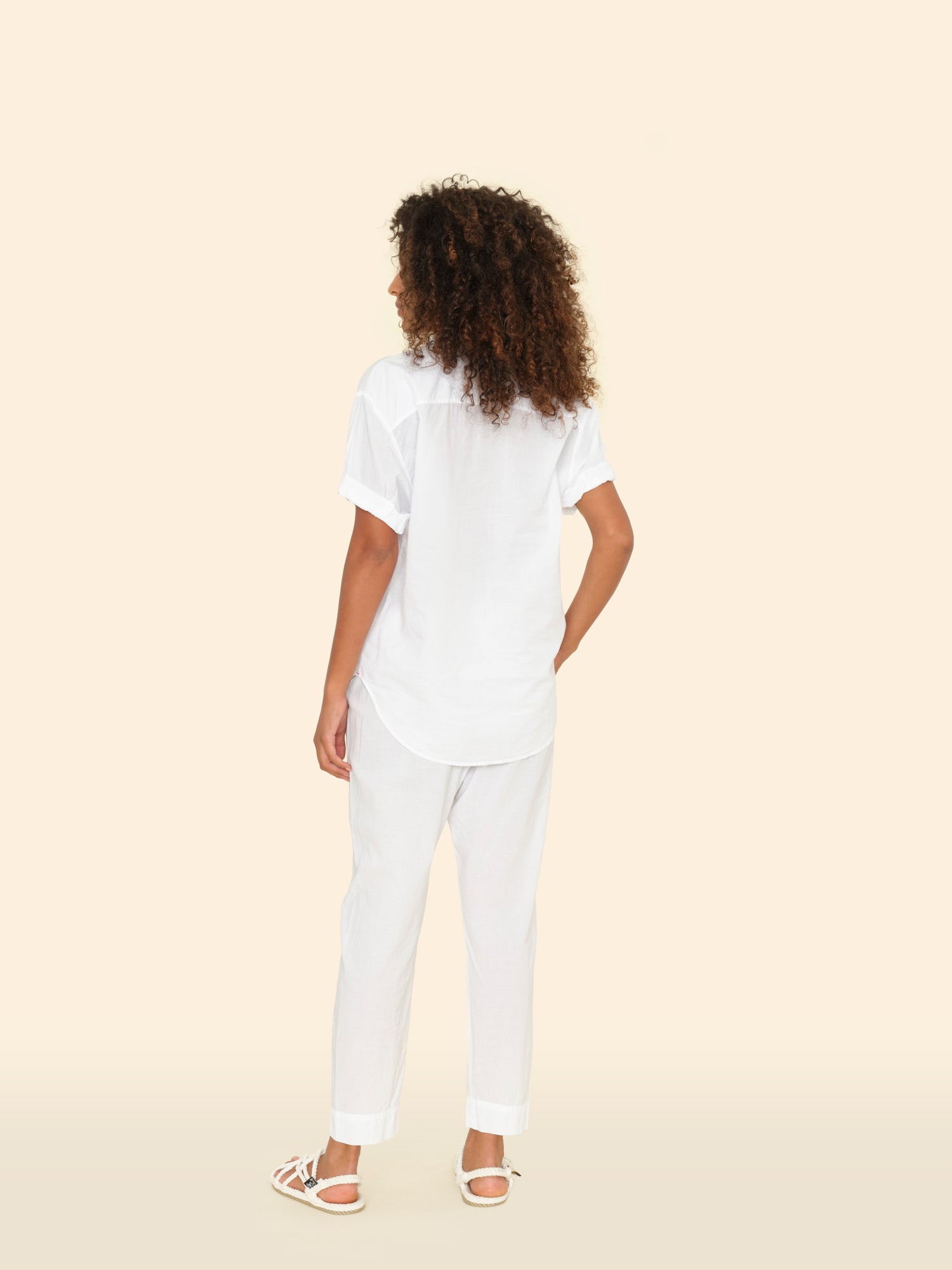 Easy does it. Draper is made in our classic lightweight woven cotton poplin for a lived-in look and feel. Draper is an easy pull-on pant with a drawstring waist and side seam pockets.