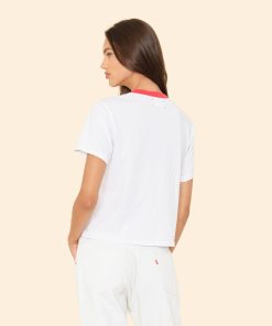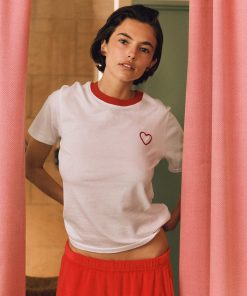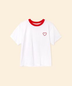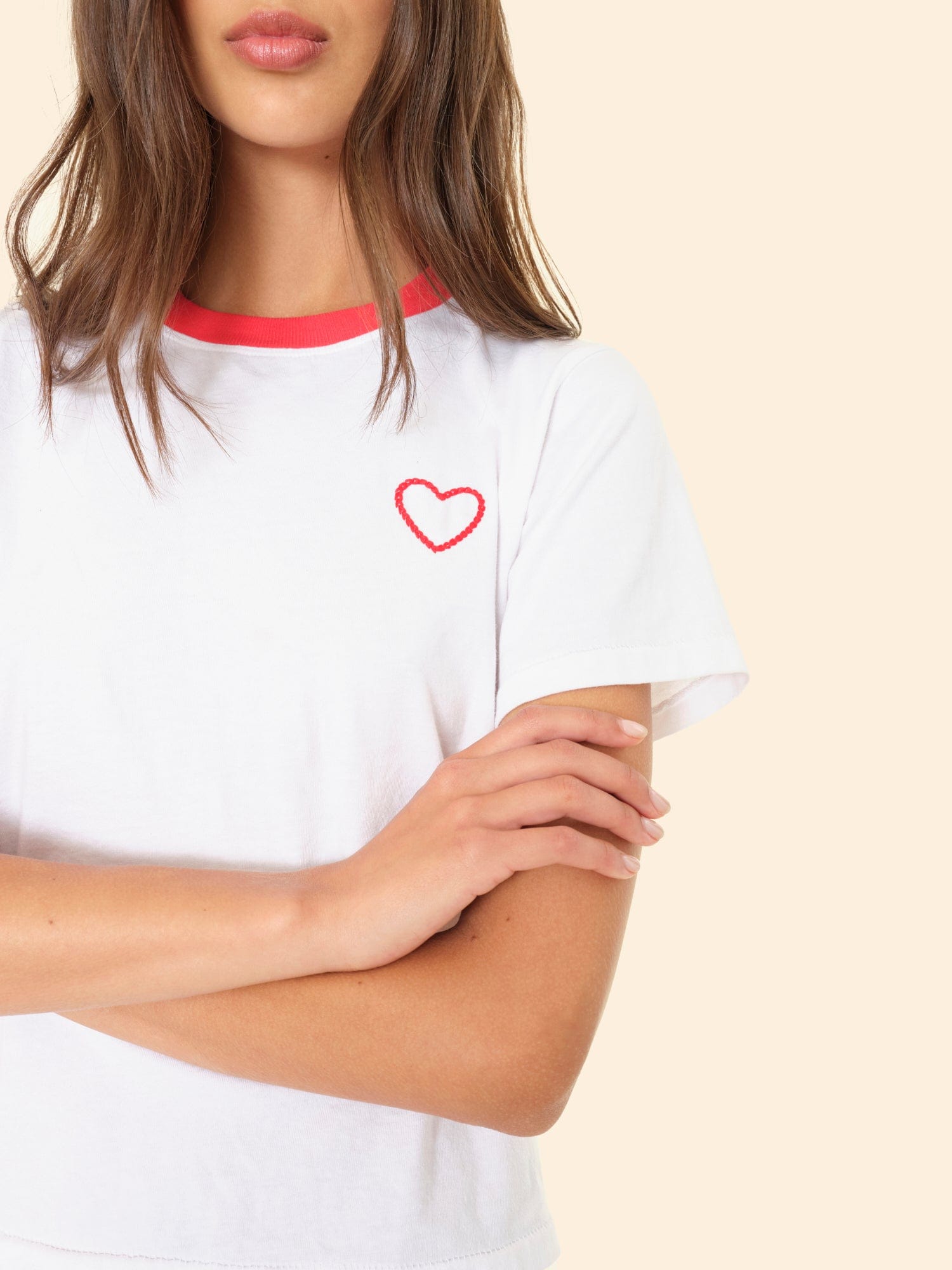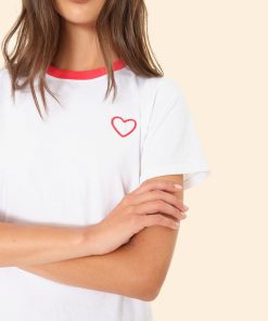 Made With Love. Marie is made in our ultra-soft cotton jersey. This limited edition vintage-inspired ringer tee has a boxy fit and features an embroidered red heart.