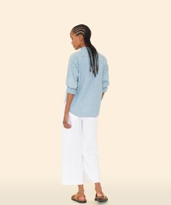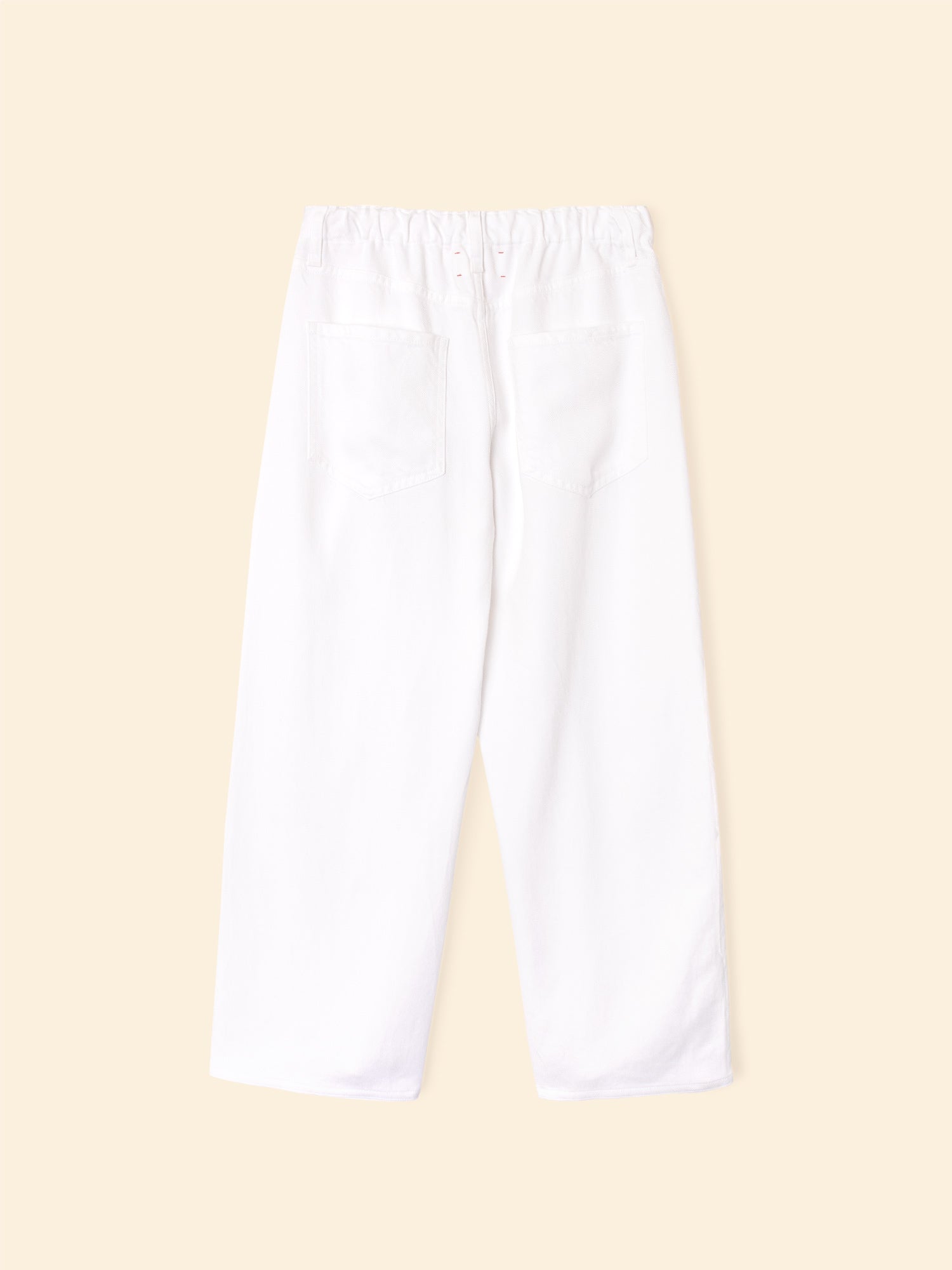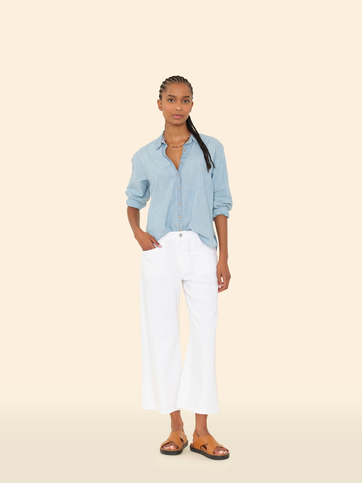 Forever Denim. Rianne is new this season in our drapey, ultra-soft lyocell denim. This high-rise five-pocket pant features a zipper fly, elasticized back waist, and a cropped wide leg.